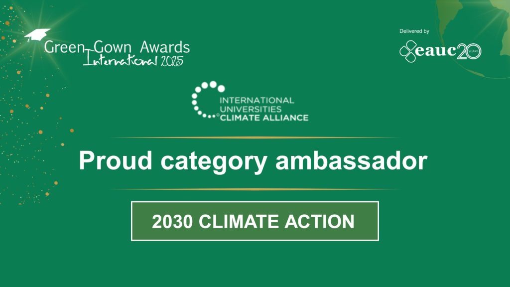 The International Universities Climate Alliance proudly supports the International Green Gown Awards, recognising higher education institutions at the forefront of climate action and sustainability. This year, we are honoured to be a category ambassador for the 2030 Climate Action, showcasing your impact and driving forward the global sustainability agenda. This is an opportunity to showcase your impact and inspire a greener future for the sector.